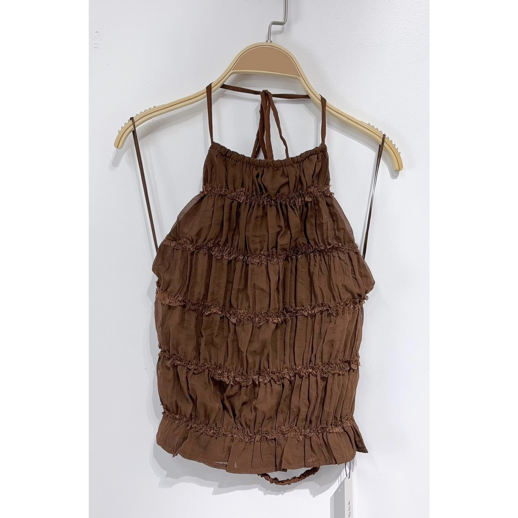 Mooie bruine top met open rug. Perfect voor avondjes uit, maar ook voor de warme dagen.