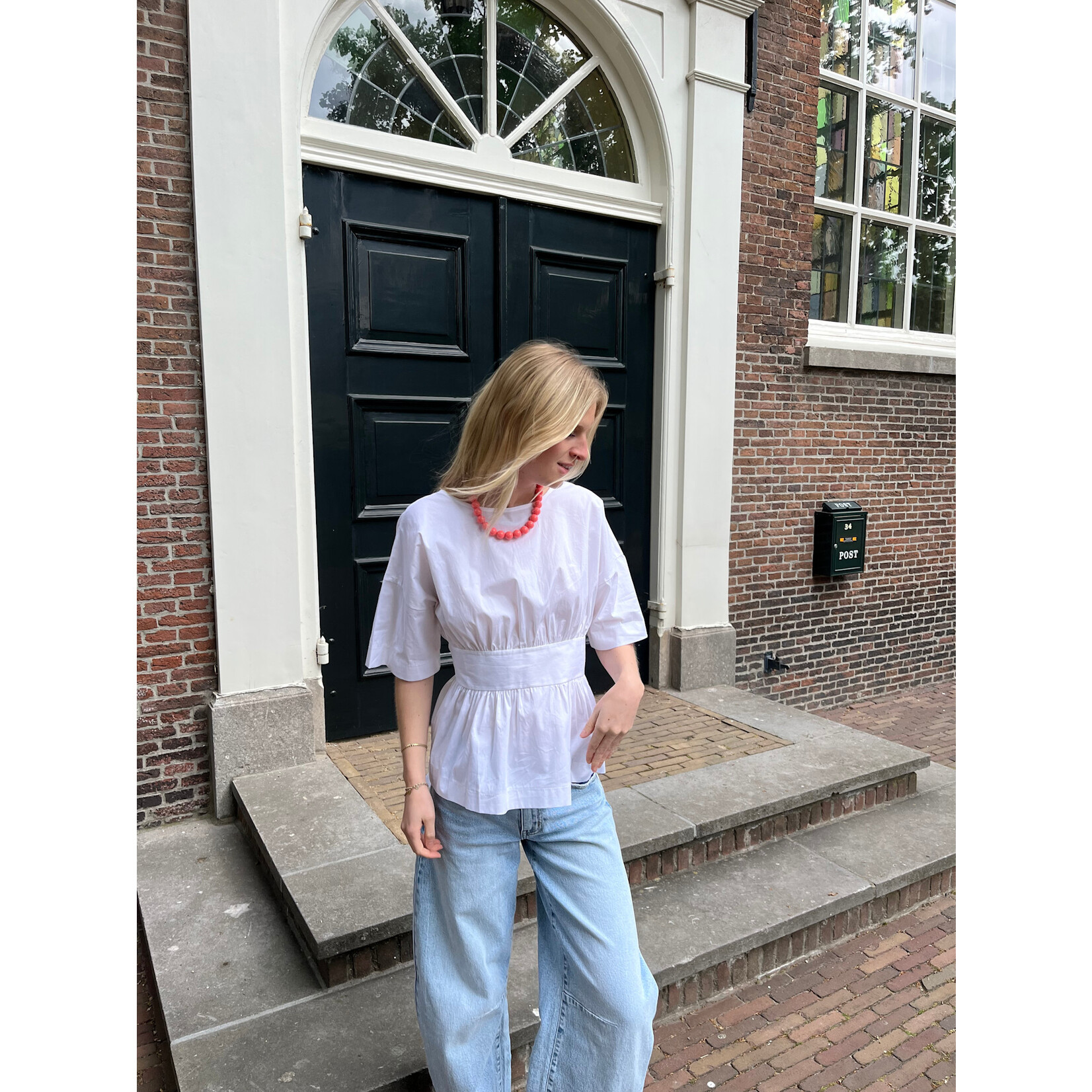 Zomerse top met striksluiting op de rug. Door de strik is de top te dragen van 36-40. We hebben hem in meerdere kleuren.